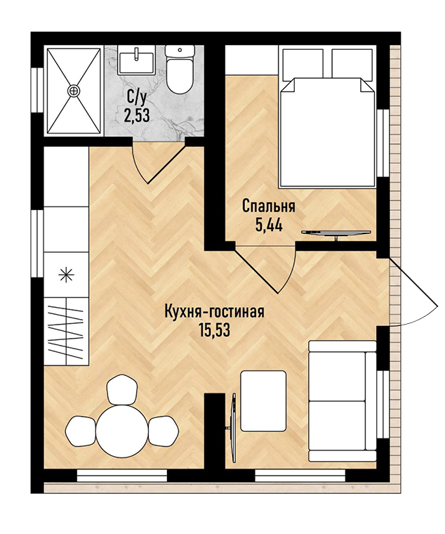 15,53 м²